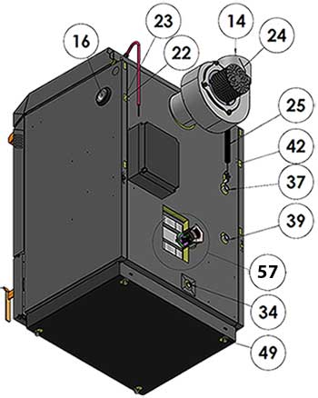 02 200 BC Combustione   FASE 2 - Dopo 8 ore: con il procedere della combustione il livello del combustibile diminuisce fino a quando la molla dell'asta di rilevamento non essendo più contrastata dalla legna scatta in avanti. A quel punto viene spento l'estrattore fumi e il processo di combustione viene interrotto.