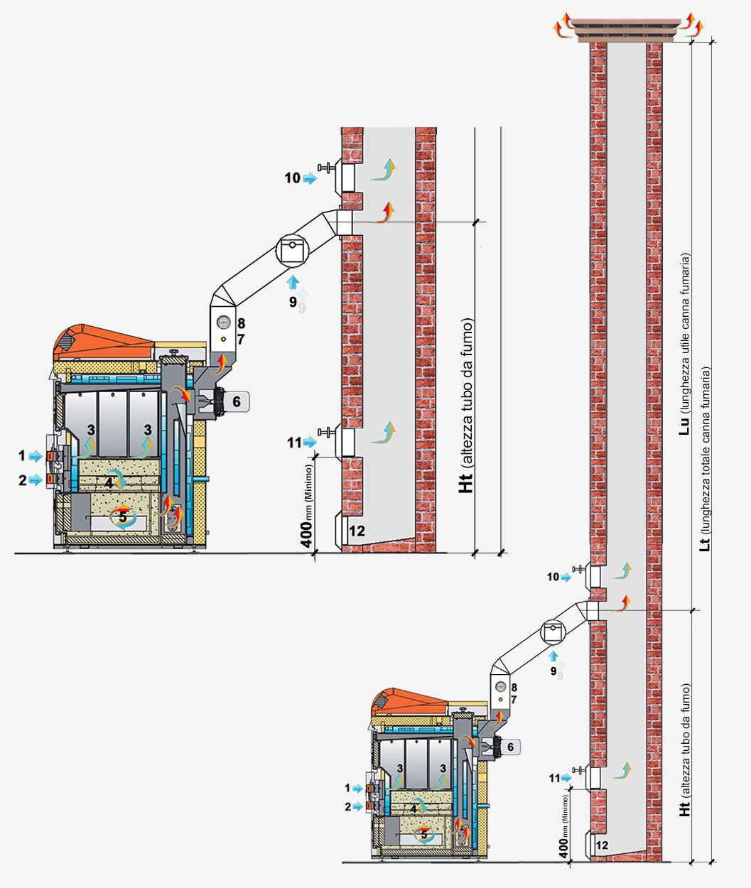6    Ventilatore d'aspirazione 12    Sportello ispezione e pulizia canna fumaria