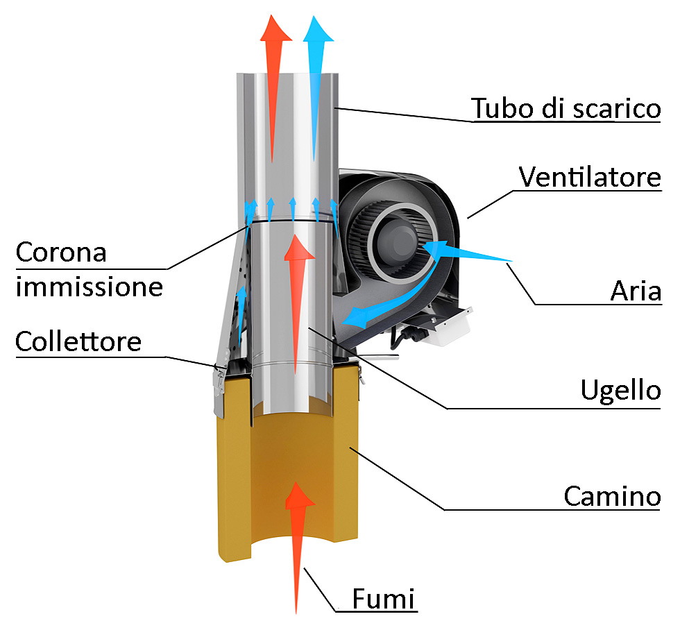 Normalmente a seguito dell’accensione della fiamma in un generatore di calore, sia che sia a camera aperta o a camera chiusa, si crea una circolazione naturale d'aria, l’aria calda sale perché più leggera e la fredda ristagna nella parte sottostante mettendo in depressione l’interno del generatore.